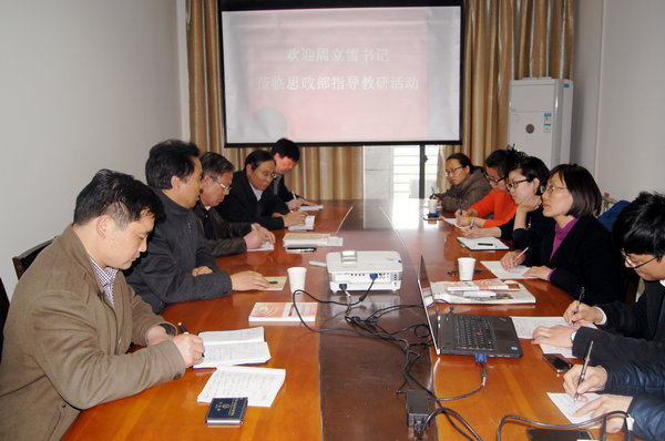 结合多年教学研究的实践及当前思政课教学工作的特点,周书记对如何上好思政课,提出了指导性意见:一、思政课教师要深入学习和研究,借鉴先进经验,开拓视野,不断提高自身的理论水平和知识文化素养;二、教材是参考,课堂主题要突出,要切透题目、讲清知识体系,注重知识点提炼和拓展;三、要把握课堂教授技巧,现象讲解不宜过多,要注重实践层面的分析同时要提炼,上升到理论层面;四、在讨论分析中发现学生存在的“急功近利、崇洋媚外”不良心态,要潜移默化正确及时引导、全面引导学生学会辩证地思维。