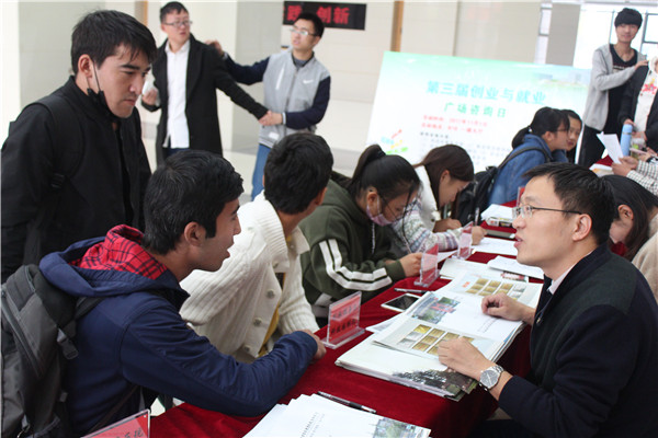 咨询活动伊始,就吸引了众多慕名而来的大三学生。他们有的带着简历请求老师帮忙修改,有的耐心等候着老师为他们进行职业测评与解答,有的则围在互动问答区跃跃欲试。活动现场也吸引了往来的学生和留学生加入到咨询队伍。在老师的热情指引下,创业意愿学生坚定了内心的想法,大一新生开始关注个人职业生涯,留学生也在这里找到了困扰他们实习与就业问题的答案。经过近2个小时的忙碌,本次活动共发放创业与就业简历指导手册200多册,提高了学生求职的积极性,营造出全校师生“人人关注创业、全员共促就业”的良好氛围。活动结束后,教师就现场征求的创业与就业课程、创业咨询与服务的意见和建议进行了汇总,在后续的教研会议积极研讨并予以改进。
