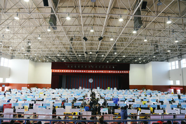 114日上午,江苏省大学生就业百校联动活动暨我校2018届毕业生就业双选会在校体育馆隆重举行。来自江苏、浙江、广东、北京、上海等10多个省市400余家用人单位齐聚我校选聘毕业生,涉及国有、私营、合资、港澳台独资、美资,股份制等企业,提供岗位16000余个,招聘专业覆盖我校材料应用、安全环保、化工应用、商贸管理、机械制造、建筑工程、信息技术、物联网等16个专业群40余个专业,我校3000余名毕业生参加双选。院长张登宏、副院长鲍桂楠现场指导,就业处、各二级学院负责就业同志以及班主任全程跟踪,一、二年级学生1000余人到达现场观摩。