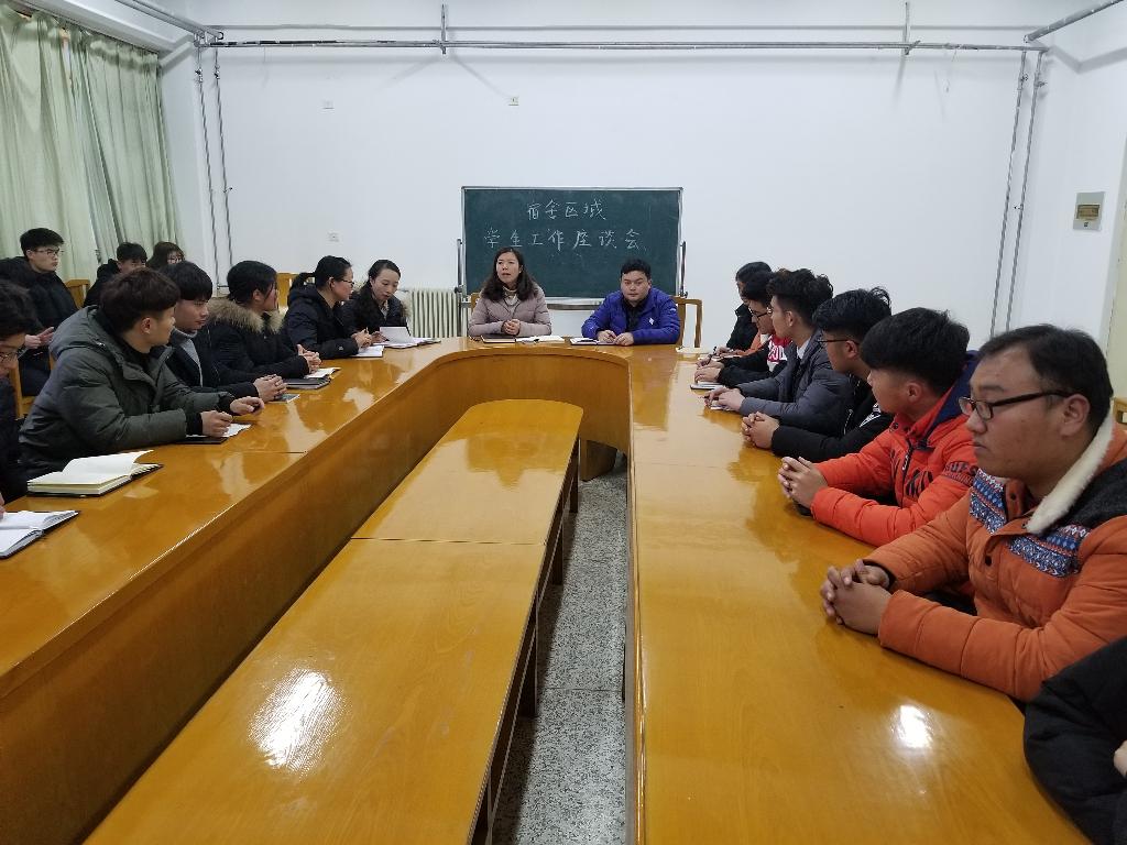 为深入贯彻落实党的十九大精神和学校第二次党代会精神的体现,进一步提升学生公寓管理水平、增强服务意识,营造良好的育人氛围,12月15日下午,学工处宿管中心在C05二楼会议室组织召开了学生代表座谈会,会议由安莹副处长主持,宿舍区域主管及各区域宿舍长代表参加会议。