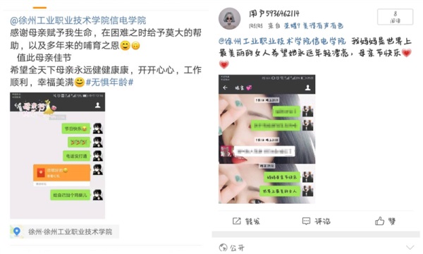 网友快乐生活在微博中写到:“感谢母亲赋予我生命,在困难之时给予我莫大的帮助,以及多年的哺育之恩,希望母亲健健康康,开开心心,工作顺利,幸福美满”。在表达祝福的同时,还晒出了给妈妈发的微信红包,虽然金额不多,但却是自己的一份心意。用户5936462114在微博中写到:“我妈妈是世界上最美丽的女人,希望她永远年轻漂亮,母亲节快乐!”网友海而朝逝在微博上晒出了母亲节的鲜花和妈妈欣慰的笑容。