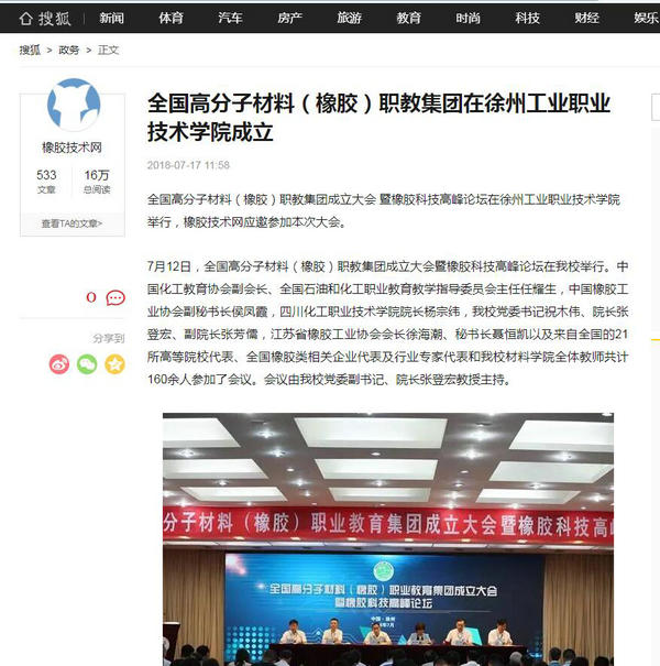 全国高分子材料(橡胶)职教集团成立大会 暨橡胶科技高峰论坛在乐动网站网页版举行,橡胶技术网应邀参加本次大会。