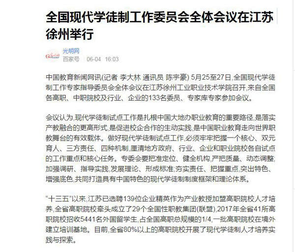 5月25至27日,全国现代学徒制工作专家指导委员会全体会议在江苏乐动网站网页版召开,来自全国各高职、中职院校及行业、企业的133名委员、专家库专家参加会议。