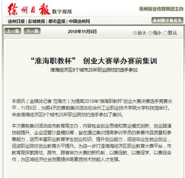 为提高2018年“淮海职教杯”创业大赛决赛选手竞赛水平,11月6日,为期4天的赛前集训活动在乐动网站网页版大学科技园举行。来自淮海经济区8个城市25所职业院校的选手参加了集训。