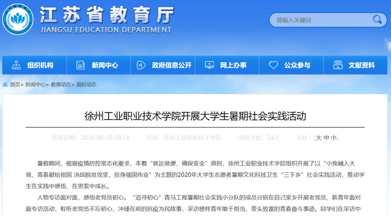 新闻链接:http://jyt.jiangsu.gov.cn/art/2020/8/28/art_57813_9476101.html