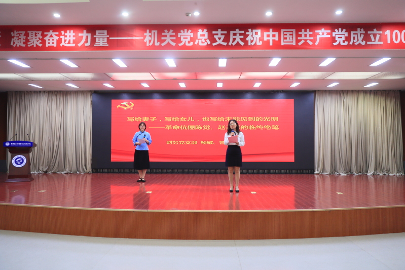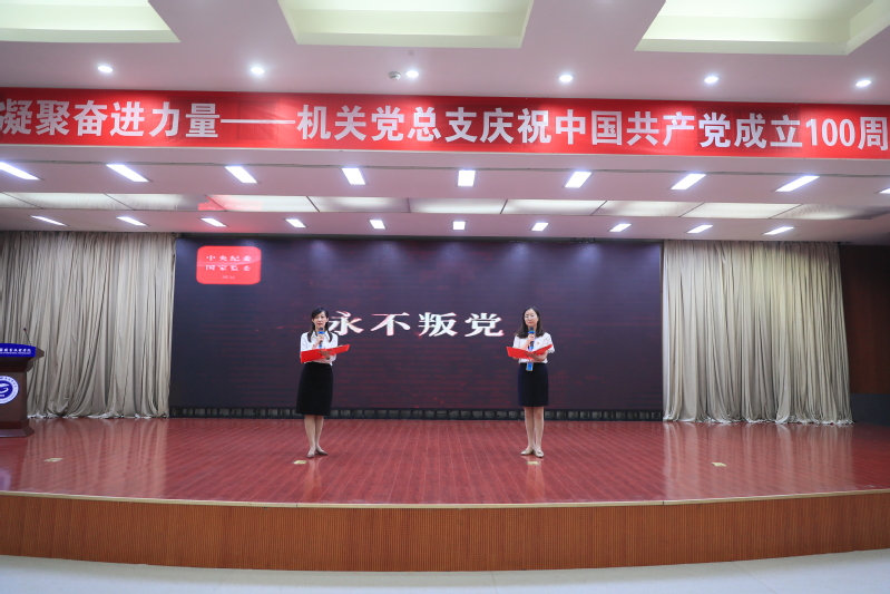 百年征程波澜壮阔,百年初心历久弥坚。为庆祝中国共产党成立100周年,营造浓厚的节日氛围,深入推进党史学习教育,切实增强广大党员、教职工的荣誉感、归属感、使命感,6月25日,机关党总支在图书馆报告厅举行了庆祝中国共产党成立100周年系列主题活动。系列活动共有四项,分别是党史学习教育专题党课、党史学习竞赛在线答题、党史故事分享会以及相关竞赛的表彰。学校党委书记祝木伟同志、党委副书记李红同志以普通党员身份参加本次活动。