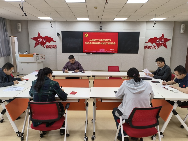 5月9日,马克思主义学院党总支在B18-1121召开理论学习中心组学习暨党纪学习教育读书班第二次集体学习研讨会,马克思主义学院党总支理论学习中心组成员参加此次学习,会议由党总支书记陈竹主持。