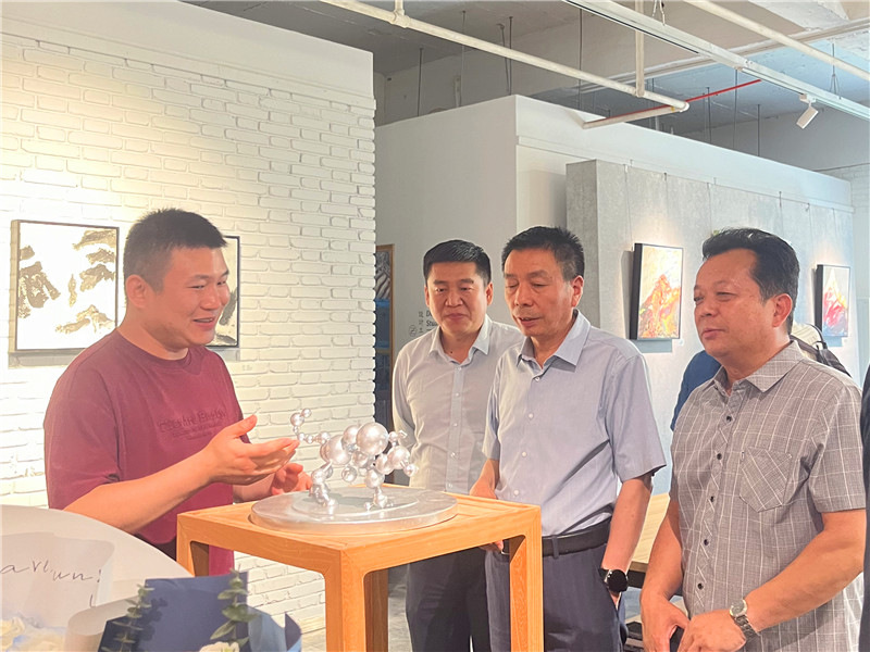 5月21日,我校2009级校友李震在徐州九曲画室举办“观山海”美术画展,鲍桂楠校长应邀出席并为开幕式揭幕,与中国矿业大学、江苏师范大学、徐州美术馆等单位40余名师生汇聚一堂,共飨文化盛宴。