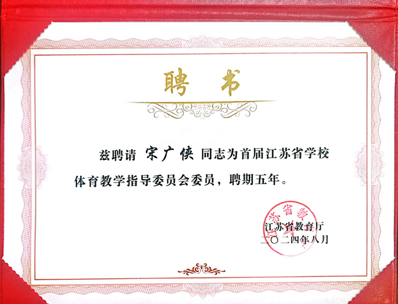 为贯彻落实中共中央办公厅、国务院办公厅和省委办公厅、省政府办公厅关于全面加强和改进新时代学校体育工作的部署要求,进一步加强对全省学校体育工作的领导管理和宏观指导,构建大中小学一体化体育教学教研、竞赛管理、督导评估体系,省教育厅决定撤销原“江苏省高校体育教学指导委员会”,成立首届“江苏省学校体育教学指导委员会”,于2024年3月启动了专家推荐、考察和聘请等各项筹备工作,通过层层遴选,我校宋广侠教授最终脱颖而出。