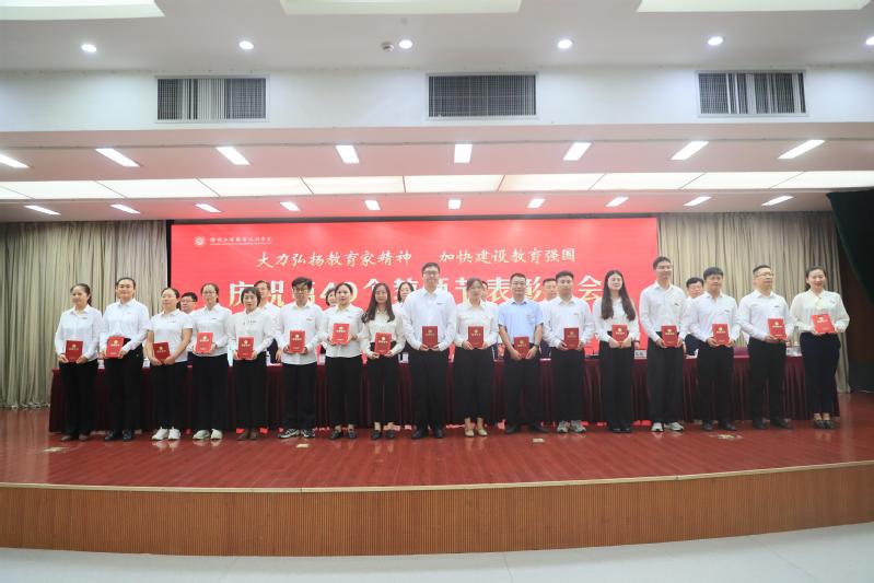 党委副书记李红宣读了校师德模范、优秀教师、优秀教育工作者、优秀辅导员表彰决定。与会领导为受表彰人员颁发证书。