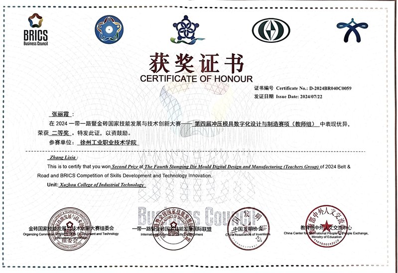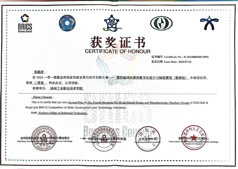 近日,一带一路暨金砖国家技能发展与技术创新大赛冲压模具数字化设计与制造决赛在漳州职业技术学院圆满落幕,来自全国各省市32支代表队参赛。此次比赛中,我校荣获优秀组织奖,我校机电工程学院教师张超彦和张丽霞在大赛中展现出色实力,双双在教师组比赛中荣获二等奖,斩获2枚银牌。