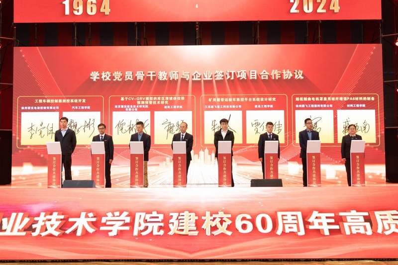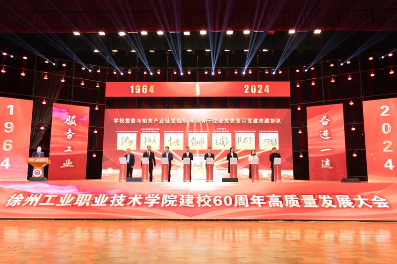 学校基层党组织与产业链上龙头企业和骨干企业签订了党建结对协议,签约仪式上分别与徐州徐轮橡胶股份有限公司党委、江苏京东信息有限公司党委、江苏开沃汽车有限公司党委、江苏江昕轮胎科技有限公司党总支、徐州重型机械有限公司党委、海信集团海信容声(扬州)冰箱有限公司党支部、徐工汉云技术股份有限公司党支部、中国邮政集团有限公司徐州分公司党总支、徐州中煤百甲重钢科技有限公司党支部、江苏华源节水股份有限公司党总支、徐州卫星石化有限公司党支部等11家企业党组织进行了签约。