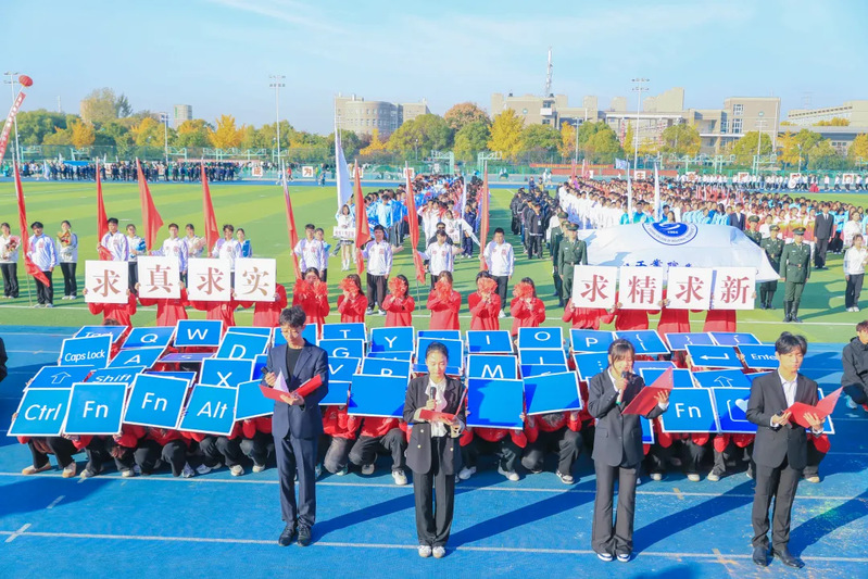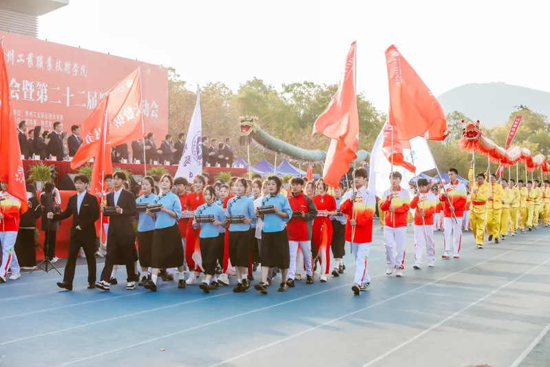本科生院创新性地将琴棋书画等中华优秀传统文化元素融入表演,展现全力培养懂技术、能研发、会管理的本科层次高素质技术技能人才的信心;材料学院用四个情景剧表达了对学校“四类培养模式”及“3456”人才培养体系的决心和行动,巨幅五星红旗迎风跑过,是信仰,更是力量;工商学子身着传统服饰,手持算盘、直播带货的流行趋势和京东物流的高效便捷与舞蹈结合,展现了现代商业与传统文化的完美融合,不仅让传统文化焕发新生,也传递出一种文化自信和时代精神;建筑学院用舞蹈展示了艺术才华,更传递出不屈不挠、积极向上的精神力量;机电学院方阵创意庆双庆,四位特殊“运动员”创意出场,展现学校自1964年起的发展变迁,方阵队员以生动形式展现徐工职院的“3456”人才培养体系,融合多元教育,助力民族复兴;化工学院方阵,118位同学犹如元素周期表上的118种元素,从元素周期表到手中国旗挥舞展现化工学子对科学的热爱,更体现他们深厚的爱国情怀,手中国旗仿佛一种催化剂,激发每位同学心中的热情与活力,增强整个方阵的凝聚力,同学们还将现代舞蹈与中国传统舞蹈巧妙结合,展示化工学子多才多艺的一面,表达对中国传统文化的尊重与传承;当诗词碰到运动会,辅导员和孩子们一起嗨翻天!汽车学院以《沁园春·雪》为灵感,以新中国成立75周年和校庆60周年为背景,以“3456”人才培养体系为内容创作《沁园春·奋斗志》,融合学院发展理念,充分展现汽车学子奋发有为、蓬勃向上的青春风采!信息工程学院以“爱国、爱校、爱院”为主线,围绕新中国75周年华诞,学校60周年校庆,信息专业成立30周年,通过“师生原创作品共诵”和“方阵模拟键盘表演”等方式,表达了对祖国的美好祝愿,对学校职业本科建设的强大信心,以及对培养高素质技术技能型人才的坚定决心!