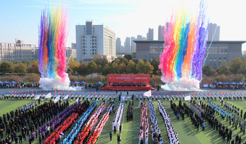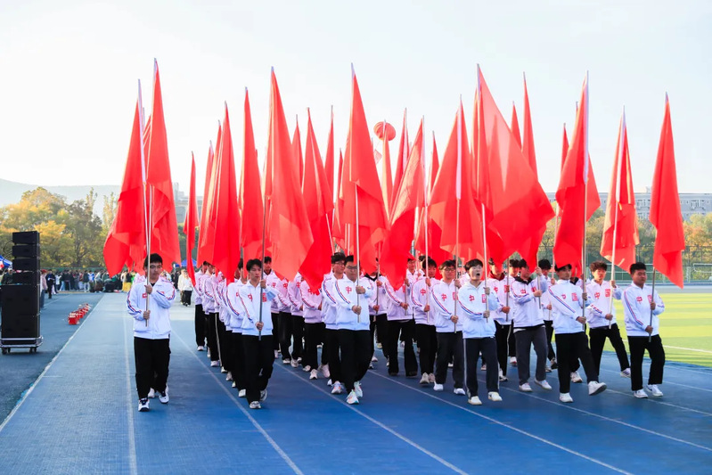 接着,校长鲍桂楠发表了热情洋溢的讲话,他指出,体育可以涵养自强不息的身心潜质,磨炼坚忍不拔的意志品质,锤炼奋勇争先的精神品格,积极倡导“每天锻炼一小时,健康工作五十年,幸福生活一辈子”的现代健康生活理念,设立了“教职工运动日”,打造了“五育融合”特色育人体系,实施了“11231”五育成长工程,向同学们明确提出了“擅长2项体育运动”的体育素质发展要求。通过举办丰富多彩的体育活动,营造出“天天有锻炼,周周有活动,月月有比赛,人人俱乐部”的浓厚校园体育文化氛围。同时寄语全校师生牢固树立终身锻炼的健康理念,走进操场,走进大自然,进一步推动我校体育事业的发展,激发更多人对运动的兴趣与热爱,以健康的身心,为早日实现自己的人生梦想和 “国内一流、海内外有影响的工业特色鲜明的本科层次职业学校”的建设目标而努力奋斗!