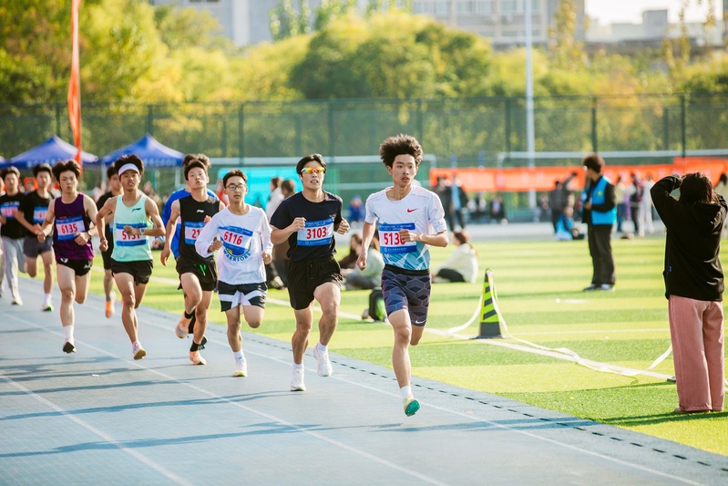 短跑赛道上,学生们化身为一支支蓄势待发的利箭,随着发令枪响,他们如同被紧绷的弓弦猛然释放,带着破风之势,以惊人的速度奋力向前冲刺。这一刻,他们的每一次呼吸都如同火焰般炽热,燃烧着内心对胜利的无限渴望;每一次摆臂,都像是精准调控的引擎,凝聚着对终点线的无尽向往与执着追求。在这片速度与激情的舞台上,学生们用行动诠释了青春的无限可能,展现了徐工学子勇往直前、永不言败的精神风貌。