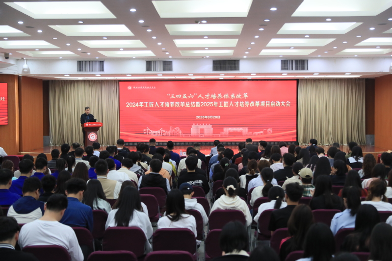 3月26日,我校在图书馆报告厅召开工匠人才培养改革2024年总结暨2025年启动会,校长鲍桂楠,副校长张芳儒、曾凡远出席会议,相关职能部门、各二级学院负责人、2024年国省校三级获奖师生代表、2025年省赛参赛师生和指导教师代表、赛课融合改革项目负责人等参加会议,会议由副校长张芳儒主持。