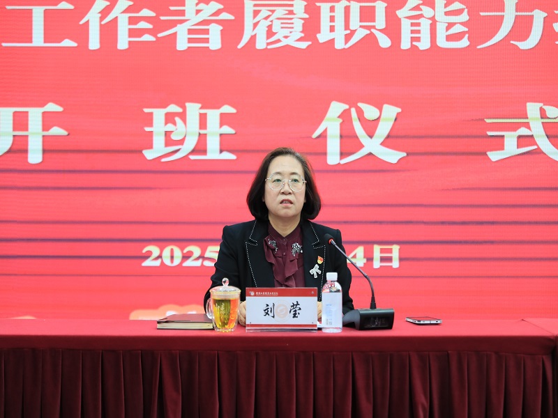 为深入贯彻中央八项规定精神学习教育,着力提升基层党务工作者的履职能力,强化基层党组织的组织力与战斗力,4月24日,我校2025年党务工作者履职能力提升培训班正式开班。党委书记、党校校长刘莹出席开班仪式并讲话,党委委员、纪委书记、派驻监察专员葛志亮讲授专题党课,党委委员、党委组织部、统战部部长,党校常务副校长乔向东主持开班仪式。