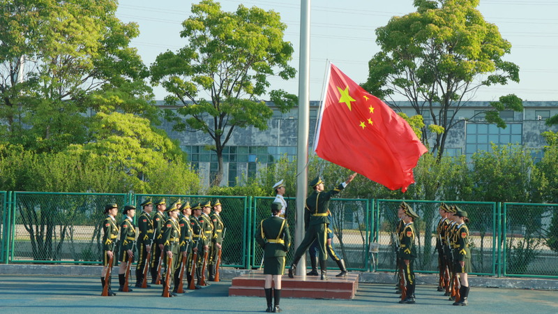 迎着朝阳,国旗护卫队身姿挺拔、目光坚毅,步伐铿锵护送国旗至升旗台。激昂国歌奏响,升旗手振臂扬旗,国旗随朝阳升起。全体师生庄严肃立行注目礼,爱国情与自豪感在心间澎湃。