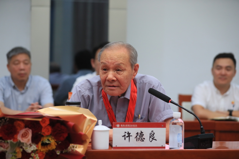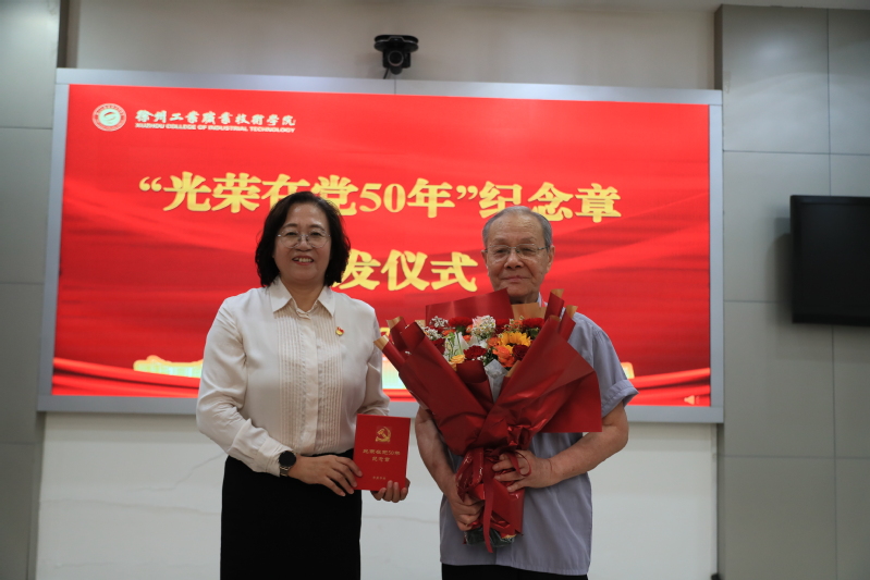 会上,党委书记刘莹为党龄50周年的退休党员许德良同志颁发“光荣在党50年”纪念章。