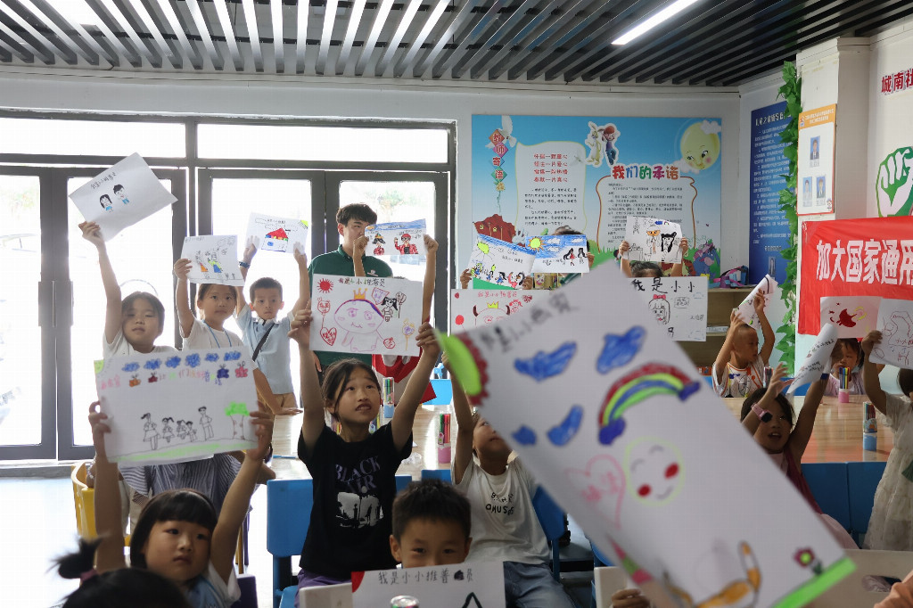 团队走进凤羽街道城南社区“儿童之家”,为孩子们带来了丰富的语言活动。实践团开展了图书捐赠,通过普通话知识竞赛、绕口令挑战、古诗诵读、规范汉字书写等一系列语言培训活动,帮助孩子们认识到普通话的重要性。在“我是小小推普员”的海报绘画环节,孩子们通过制作海报加深了对普通话的认同感。