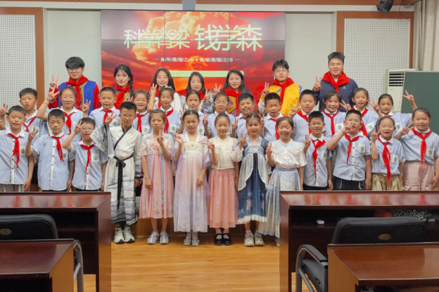 带着点亮童心的热忱,宣讲团成员走进市实验小学,为小学生们带来了一场别开生面的“两弹一星”精神启蒙课。队员们精心设计,运用生动活泼的动画短片、珍贵的历史图片和互动性强的科普小实验,深入浅出地讲述了“两弹元勋”们隐姓埋名、以身许国的感人事迹,以及“两弹一星”研制过程中自力更生、勇攀高峰的壮丽篇章。“钱学森爷爷冲破阻挠回国的故事让我好感动!”孩子们稚嫩而真挚的话语,闪烁着对英雄的崇敬与对科学的好奇,科学的种子和爱国的情怀在幼小的心灵中悄然生根。宣讲现场气氛热烈,红领巾们踊跃提问,清澈的眼神中映照着宣讲团播撒下的精神星火。“点亮一颗心,照亮未来路,看到孩子们眼中闪烁的光,我们深感使命光荣。”队员毛立征感慨道,“这堂启蒙课,是‘星火’传承的起点!”