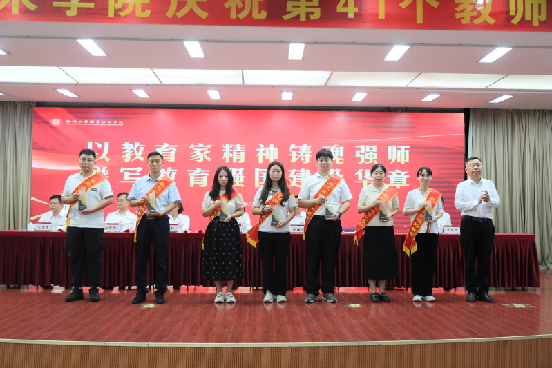 9月10日下午,我校在图书馆报告厅召开庆祝第41个教师节表彰大会。全体校领导、党委委员、“学生最喜爱的教师”“最受企业欢迎的教师”“服务徐工贡献突出的教师”“从教三十年教师”“协同育人优秀代表”、各党总支书记、二级学院(部)、职能部门负责人、新入职教师、教师和辅导员代表参加会议,大会由副校长曾凡远主持。