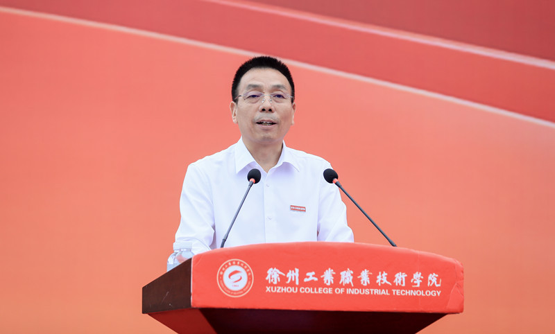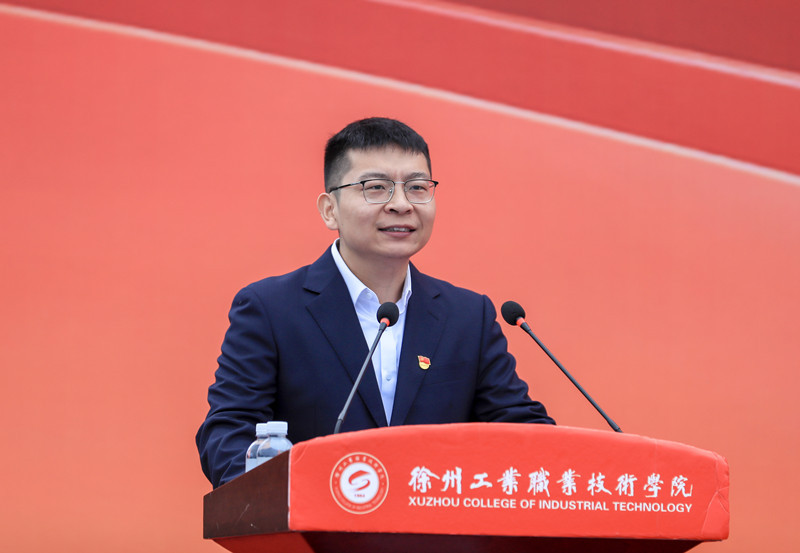 校长鲍桂楠代表学校全体师生,向2025级新生致以热烈欢迎,并以《以青春之我,铸强国之技,在新时代新征程上绽放技能报国光芒》为题,为新生讲授“开学第一课”。他指出,学校特意选择在9月18日举行开学典礼,旨在勉励大家铭记历史、砥砺前行、勇担国家重任。他从历史的回望中揭示了“技能报国”的时代价值,从未来的展望中指明了“匠心筑梦”的成才路径。围绕如何开启大学生涯、成就出彩人生,他向新生提出三点希望:一是永葆家国情怀,做理想坚定的时代新人。希望同学们立大志、立长志,将个人追求融入国家发展,奠定坚实的人生根基。二是坚定成才信心,做技艺精湛的硬核青年。希望同学们脚踏实地、勇于拼搏,向榜样看齐,珍惜时光、潜心学习、勤于实践,在“徐州工业”这片沃土上,练就专业绝活,勇担时代重任,努力成为大国工匠!三是勇于创新突破,做担当使命的强国先锋。希望同学们主动拥抱变革、敢于创新突破,树立“科技向善”的价值观,不怕吃苦,敢于失败,争做有情怀、有担当的时代先锋,为强国建设贡献青春智慧!