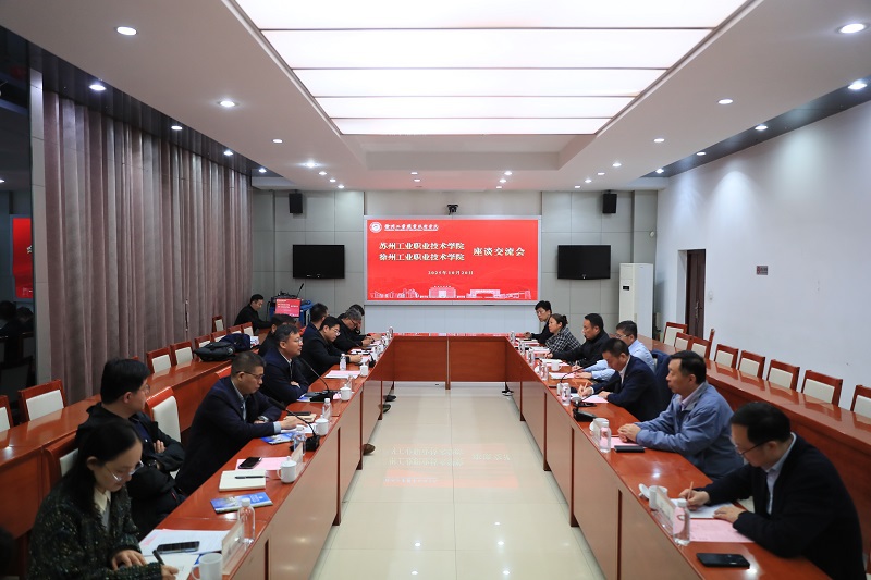 10月20日,苏州工业职业技术学院党委副书记、校长马延文,党委委员、副校长刘晓、苏华、陈艺等一行10人来校,围绕“十五五”时期事业发展的前瞻谋划、战略布局与改革路径等开展深入交流。我校党委副书记、校长鲍桂楠,党委委员、副校长孙健身、曾凡远,以及党政办、党委组织部、教务部、人事处、科技与产业部、发展规划处等部门负责同志参加交流活动。