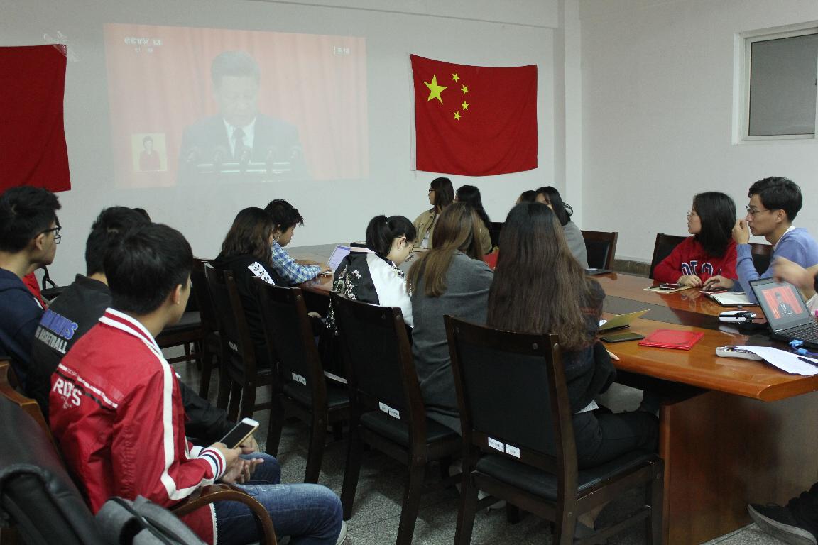 10月18日上午,材料工程学程学院组织团学联干部收看中国共产党第十九次全国代表大会开幕会,认真聆听了习近平总书记代表中央委员会向大会作的报告。同学们一边认真聆听,一边认真记录,无不满怀热情。在随后进行的集中讨论中,学生感慨万纷纷表示要牢固树立社会主义核心价值观,为实现中国梦建功立业。其中团总支副书记孔壮说:“作为青年学生干部更要加强自我革新勇气,增强政治引领和价值引领,着力服务青年、凝聚青年。”