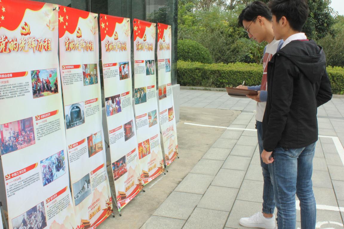 材料学院学生观看十九大宣传展板、认真记录