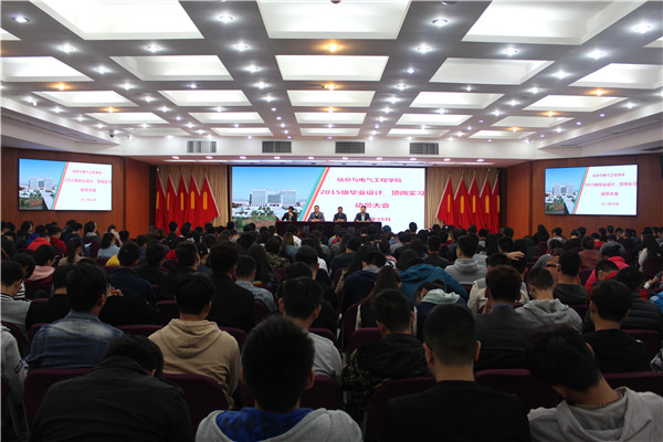 近日,信息与电气工程学院在图书馆报告厅举行2015级毕业设计暨顶岗实习动员大会。学院院长陈祥章、党总支书记丁振华、副院长王方杰、徐忠杰出席本次大会;2015级班主任、辅导员、全体同学参加了本次动员会,会议由副院长徐忠杰主持。