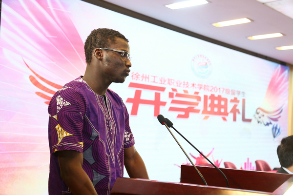 来自刚果(布)的丁天命同学,代表老生发言。他用流利的汉语,衷心感谢学校对留学生们的关爱、支持和帮助,感谢老师们的辛勤工作。他汇报了自己在学业、课外活动、创新竞赛等各方面取得的成绩;并鼓励新同学们尽快适应留学生活,勤奋进取,勇于拼搏,实现梦想。