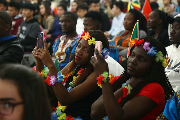开学典礼结束后,留学生齐聚一堂,在图书馆报告厅享受精彩纷呈的艺术盛宴。学院领导及相关职能部门及二级学院负责人出席晚会,与所有留学生一同度过了一个难忘夜晚。