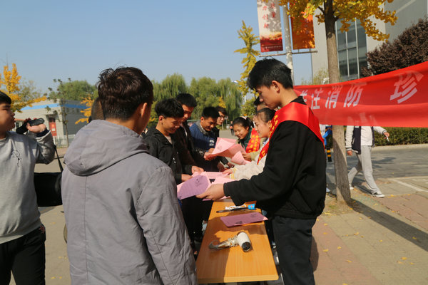 为了使消防安全宣传更具影响,引起广大师生的重视、唤起他们的共鸣,建筑工程学院特印制消防安全倡议书分发给往来师生,志愿者们给参与学生认真讲解,积极互动。消防安全与我们每个人都利益相关,志愿者们将消防安全倡议书发到学生手中,号召他们认真阅读,共同承担起维护消防安全的责任。