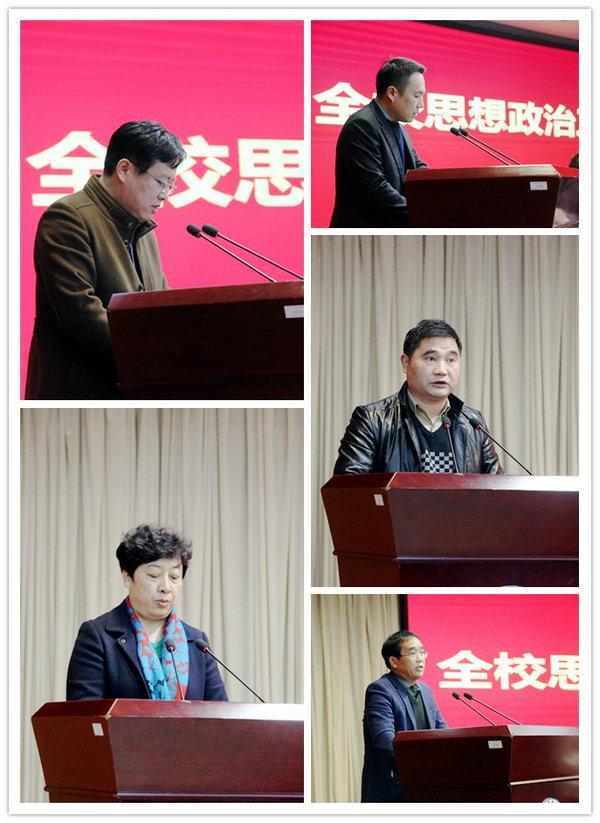 张登宏院长在总结讲话中指出,全面提升思想政治工作水平,事关学校改革发展大局。他就如何贯彻落实会议精神,提出三点具体要求:一要准确把握当前思想政治工作面临的新形势和新任务。要坚定以习近平新时代中国特色社会主义思想为统领,切实增强“四个意识”,坚持把思想政治工作作为重大政治任务和战略工程来抓,坚持把立德树人作为中心环节,把正确的政治方向、价值导向贯穿到各项工作中,以思想政治工作实效推动办学质量不断提升;二要全力推动学校思想政治工作改革创新。要坚持正确政治方向和价值取向,大力弘扬社会主义核心价值观,坚持正确学术导向,繁荣发展学校哲学社会科学,聚焦思想政治理论课这个主渠道,重视教师队伍和思想政治工作队伍这一主力军,建好课堂、论坛报告会、校园文化等传统阵地,突出网络新媒体新阵地,重视和加强第二课堂建设;三要切实抓好思想政治工作各项任务落实。构建校党委统一领导、牵头部门组织协调、相关部门多方参与、各级党组织上下联动、党政工团齐抓共管、专业第一课堂和第二课堂相融合的的全方位、多层次、宽领域的大思政工作格局,建立完善清晰的责任体系,层层落实责任,建立思想政治工作评价考核监督体系,加强监督检查,强化问责。