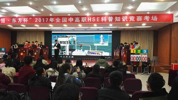 大赛项目分为“远恒•东方杯”中高职HSE科普知识竞赛和乾景•中控杯”现代化工HSE应用技能大赛两个项目。其中“中高职HSE科普知识竞赛”包括网上预赛和现场决赛两部分。11月29日下午,参赛选手准时到达现代化工HSE大赛现场,经过检录、确认,进入竞赛现场开始比赛。科普知识竞赛全面考察了参赛团队在现代化工安全、健康、环境理念方面的理论知识。