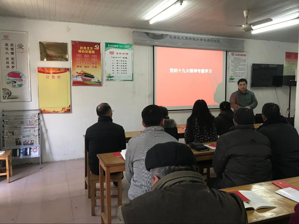 12月12日上午,基础教学部党总支班子成员深入徐州市鼓楼区美尔社区宣讲党的十九大精神,社区党支部成员、部分老党员及群众代表参加学习。