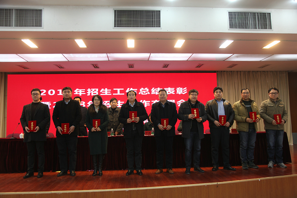 大会对2017年招生工作先进个人进行表彰。李红副书记宣读先进个人表彰文件,校领导为先进个人授予荣誉证书。顾广辉、杨宏楼两位同志代表受表彰的先进个人分别发言,分享招生体会、感悟并提出宝贵意见建议。