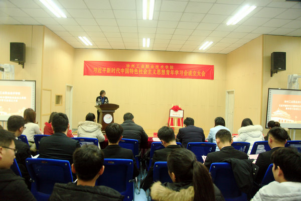 1月5日下午,我校习近平新时代中国特色社会主义思想青年学习会成立大会在教师发展中心报告厅举行。成立大会上,学院党委副书记李红为青年学习会授牌并讲话,党委宣传部部长乔向东为青年学习会指导教师刘新良、曾晓老师颁发聘书,团委、各二级学院团总支书记和全体青年学习会骨干成员参加了成立活动。