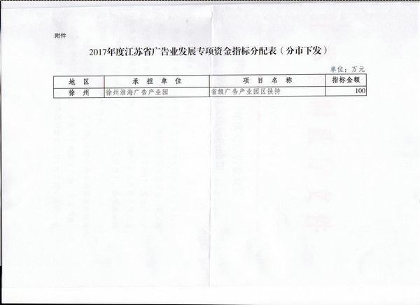近日,从江苏省财政厅获悉,大学科技园获2017年度江苏省广告业发展专项资金100万元。