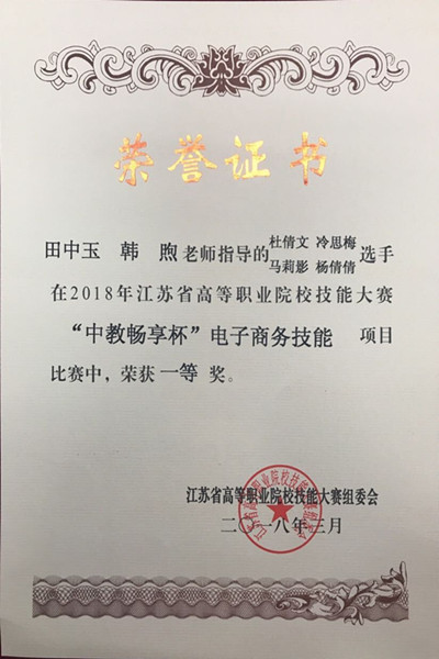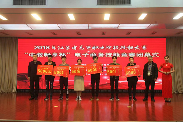 经过一天激烈的角逐,我校电子商务专业田中玉、韩煦两位老师指导的杨倩倩、冷思梅、马莉影、杜倩文等4位同学取得团体第三名的优异成绩,荣获一等奖;苏州经贸职业技术学院、无锡商业职业技术学院、常州信息职业技术学院、无锡职业技术学院、江苏信息职业技术学院荣获一等奖,苏州信息职业技术学院等11所院校荣获二等奖,江苏城市职业学院等17所院校荣获三等奖。