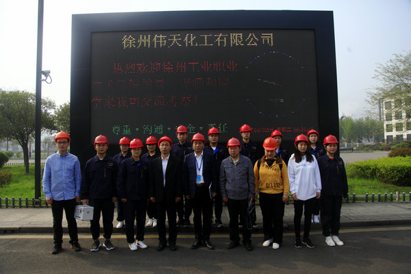 江苏伟天化工集团是一家以焦炭、化产、甲醇、LNG产品为主的大型化工企业。集团娄副总裁、王总工、鹿部长及徐州伟天化工有限公司李总经理、杨副总经理、甲醇厂赵厂长等参加了校企合作会议,集团娄副总介绍了企业发展、公司李总经理介绍了企业生产、工艺技术、安全环境等情况,赵厂长带领师生参观生产车间、总控室、安全与环保设施等,并对重点岗位与安全环保设施进行讲解及示范。双方经过交流形成人才需求、员工培训、工艺优化、产品提质等合作意向课题。