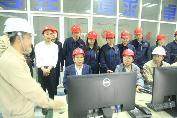 徐州钛白化工有限责任公司是一家年产30万吨硫酸、8万吨钛白粉的大型化工企业,公司郎总经理、赵副总经理、办公室赵主任、安环部张部长等参加了校企合作会议,郎总经理介绍了企业发展、国内钛白粉产业、员工队伍等情况,赵副总和张部长带领师生参观了生产车间、总控室、环保和应急设施等。双方通过交流形成工艺优化、产品提质及应用研究、安全与环保设施完善等合作意向课题。