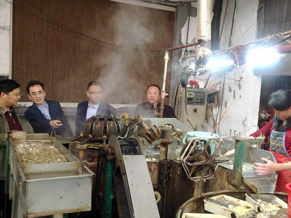 随后,技术转移中心有限公司总经理曹可陪同李峰教授一行前往徐州光彩丝绵制品有限公司,在总经理张建勇的陪同下实地考察了企业的生产车间、高效农业桑园、桑蚕文化馆等场所。考察中,李锋教授对缫丝生产线进行了仔细观察,与企业技术人员就生产线的自动化控制和生产工艺的优化改进进行了深入讨论,并对煮茧废水二次利用的可行性进行了详细论证。考察结束后,李锋教授与徐州光彩丝绵制品有限公司最终达成了江苏省高层次创新创业人才引进计划(即“江苏省双创计划”)项目的合作意向,同时希望双方在生产线改造、生产工艺改进等方面开展进一步的实质性合作。