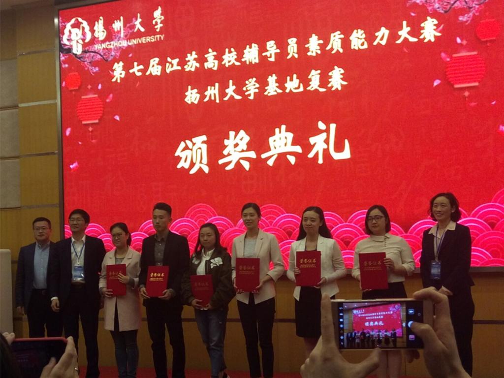 4月26日至27日,由江苏省教育厅主办、省辅导员培训与研修基地(扬州大学)承办的第七届江苏高校辅导员素质能力大赛复赛在扬州大学举行,来自全省21所高职院校的优秀辅导员参加了本次比赛。经过两天紧张激烈的比赛,我校工商管理学院辅导员陈碧宇以扎实的基本功和精彩的现场表现荣获复赛三等奖。