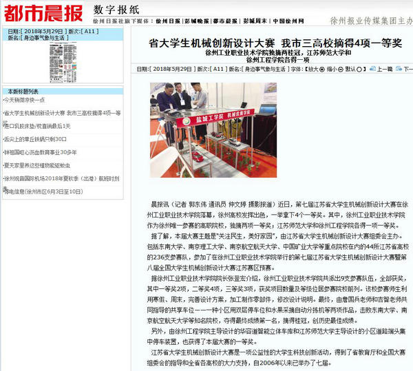 另外,由徐州工程学院主导设计的华容道智能立体车库和江苏师范大学主导设计的小区道路端头集中停车装置,也获得了本届大赛的一等奖。