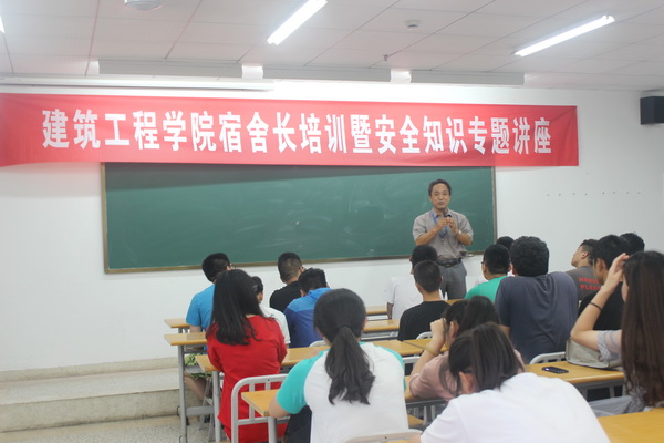 举行安全知识专题讲座。6月20日,在B18-412室举行了全体学生宿舍长安全培训会议。建筑工程学院党总支书记乔德阳从宿舍安全、团结协作、责任意识等方面对宿舍安全工作进行了宣讲,全体宿舍长集中观看了相关安全警示影片,知识讲座,通过对全国重特大火灾事故案例的深入剖析,教育并警示火灾事故的严重危害性,提醒人们要时刻关注消防安全、从自身做起,消除隐患,杜绝悲剧!通过对宿舍长安全培训,增强了宿舍长作为学生宿舍安全桥头堡的意识。