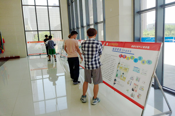 6月5日起,信电学院在B18教学楼大厅主办安全知识展览。此次安全知识展览围绕大学生日常生活中常见的安全问题出发,从交通安全、消防安全、网络安全、防盗安全、校园安全、卫生安全6个方面,通过展板展示的形式开展宣传,使同学们充分认识到 “安全第一,预防为主,综合治理”的重要性,纷纷表示从一点一滴做起,牢固树立安全思想,做到防患于未然,把好我们的安全关。