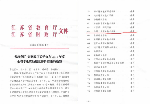 7月11日,江苏省教育厅、江苏省财政厅联合下发了《关于公布2017年度全省学生资助绩效评价结果的通知》(苏教助〔2018〕1号),经专家组评审和省学生资助工作绩效评价领导小组审定,我校被评为2017年度江苏省学生资助绩效评价优秀单位,实现了历史性突破。