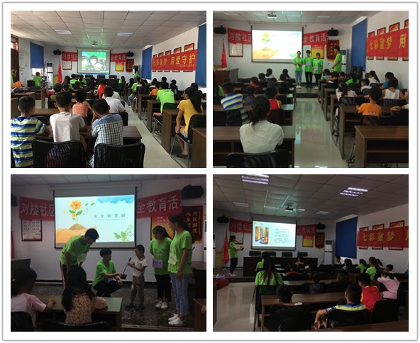 按照约定的时间,实践团一行准时来到了刘楼社区服务中心。活动开始,实践团成员介绍了这次活动的目的,通过“如何记住我?”的小游戏进行破冰,增进孩子和实践团成员之间的了解。接着,实践团团长周海芹同学通过讲安全小故事引入当天的活动主题,并通过生动的PPT演示,促进孩子对安全知识的学习。为了巩固当天所学习到的知识,志愿者还专门排练了安全情景剧,引导学生参与到情景剧中,积极思考,主动回答,对于表现积极的孩子,志愿者们给予了奖励。实践团成员精彩的表演,也让观看的孩子不时发出笑声。